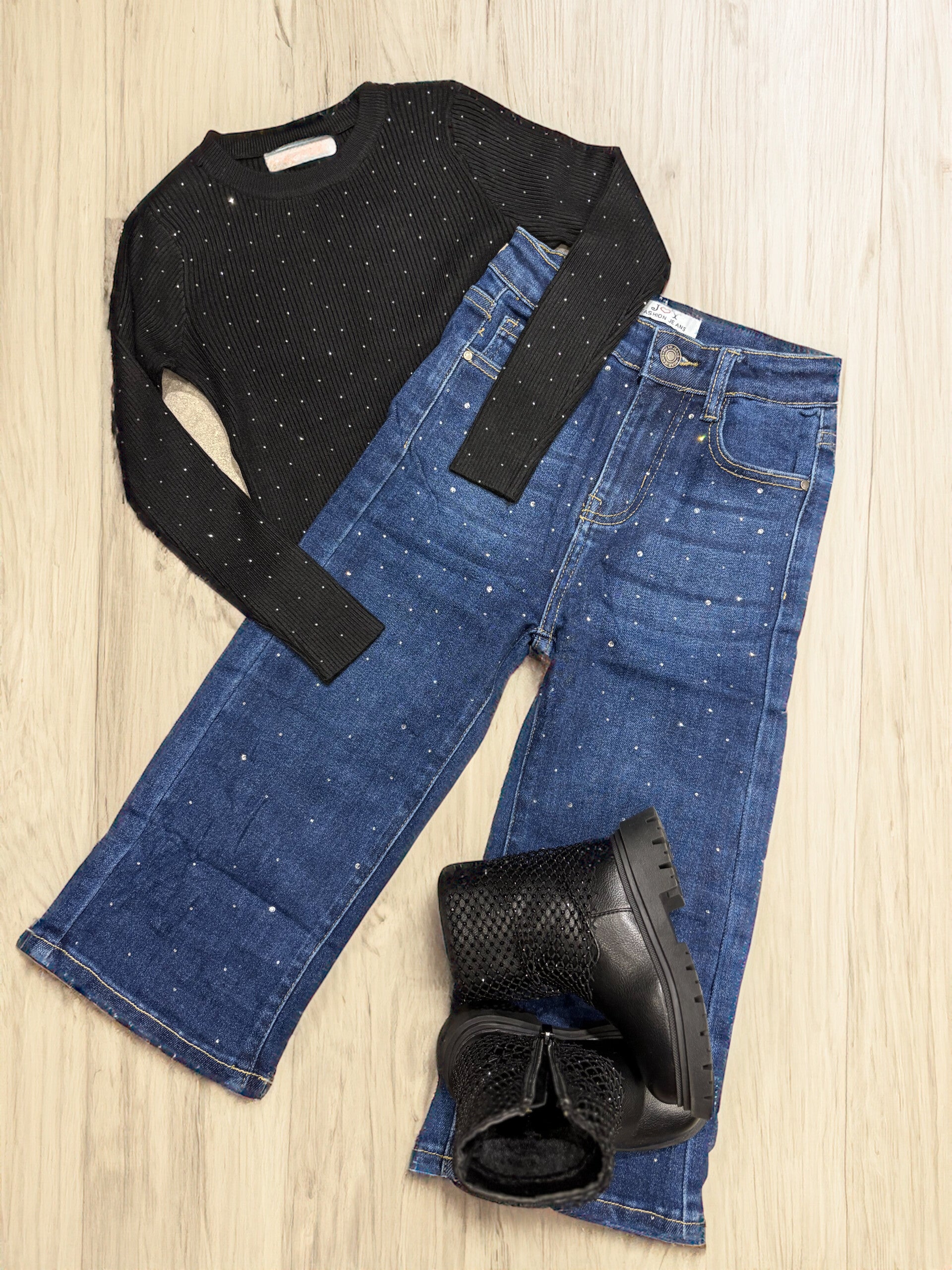Deze prachtige wide leg jeans, heeft op de voorkant studs voor classy look. Lekker veel stretch en ook een verstelbare taille.